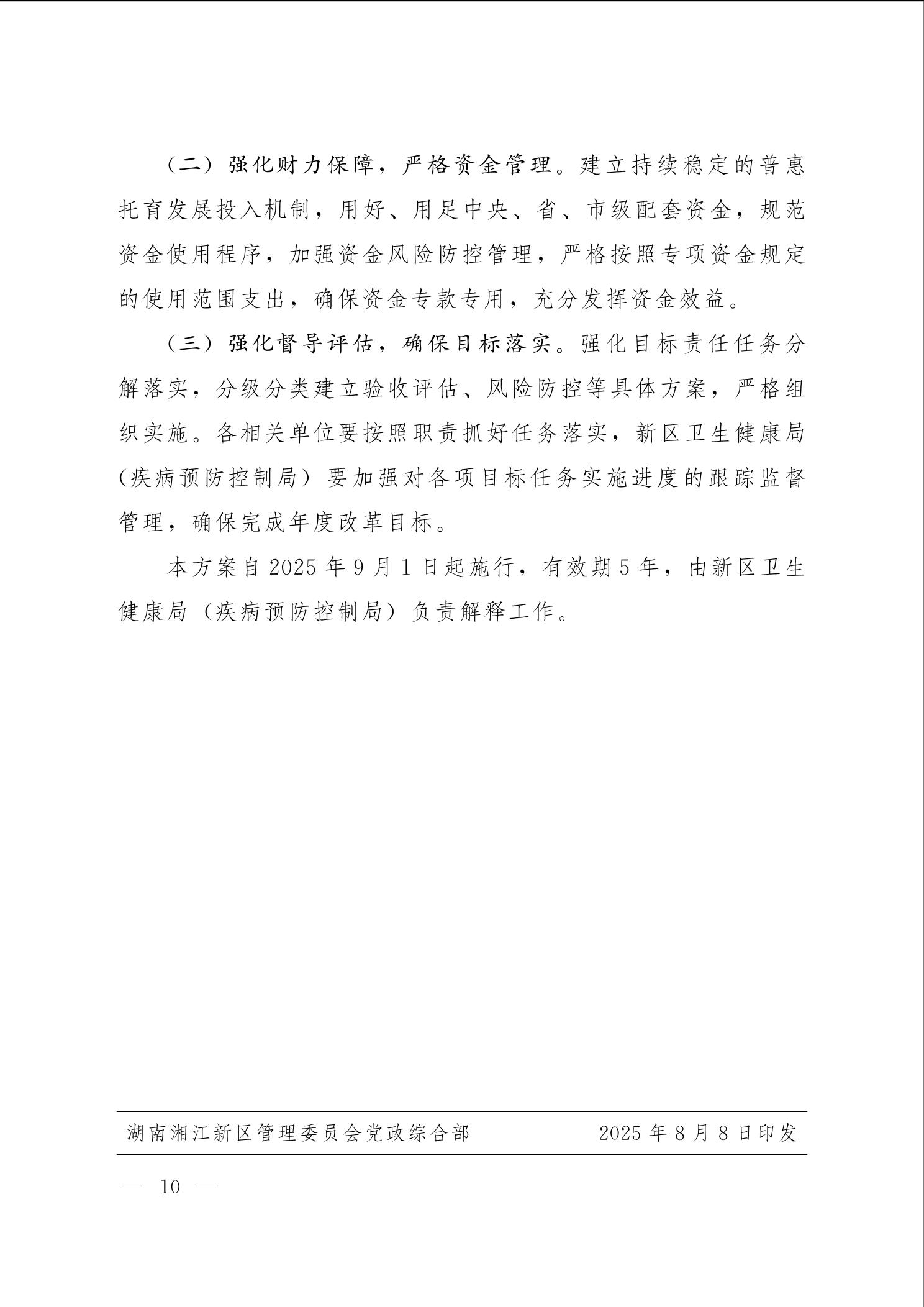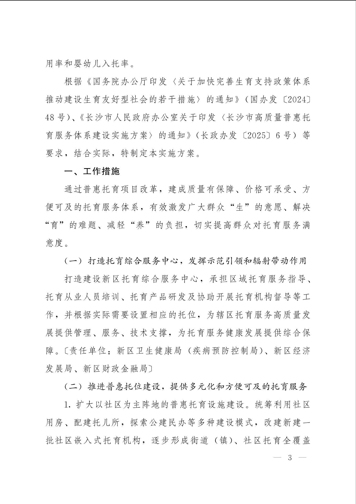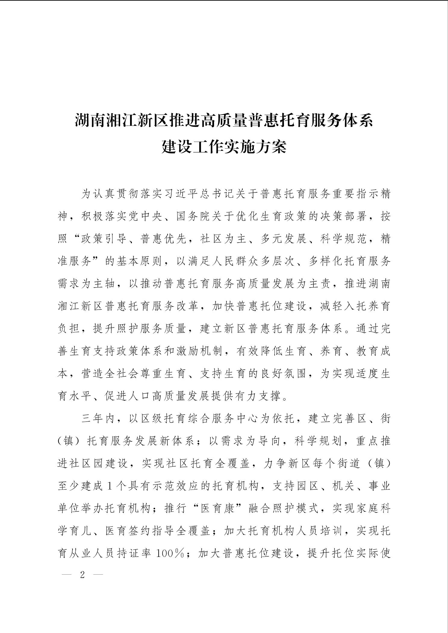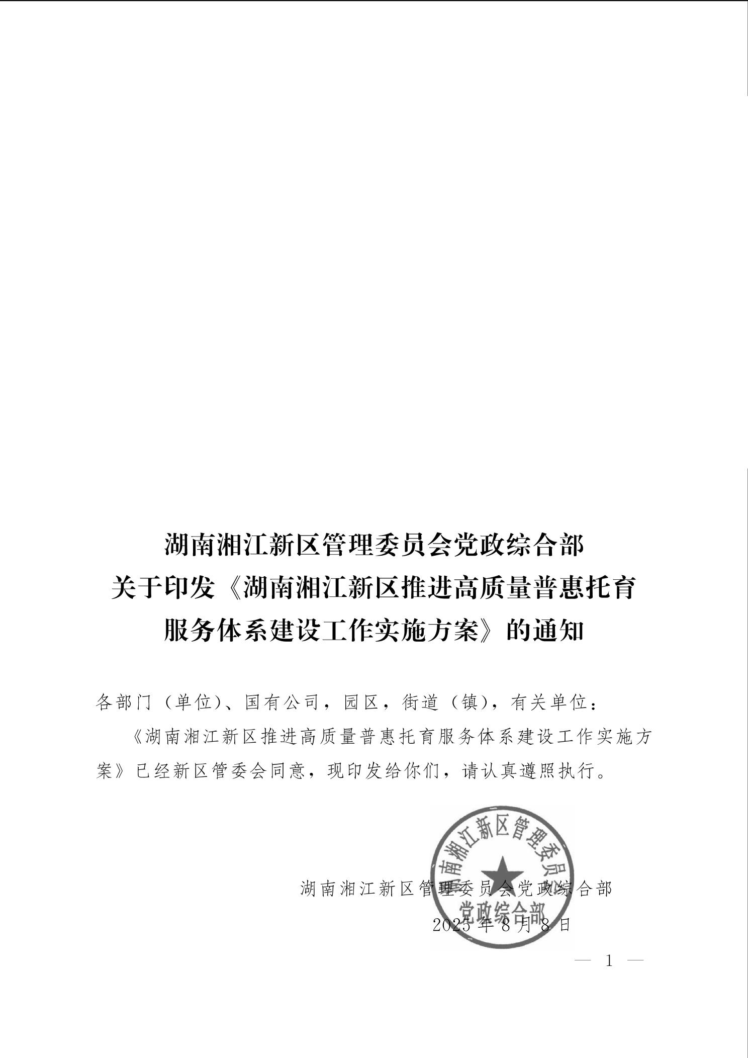 關于印發《湖南湘江新區推進高質量普惠托育服務體系建設工作實施方案》的通知