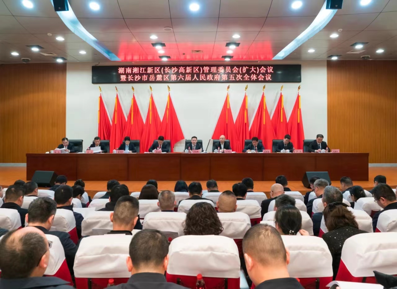 1月5日,湖南湘江新區(長沙高新區)管理委員會(擴大)會議暨長沙市岳麓區第六屆人民政府第五次全體會議召開,迅速傳達學習區兩會精神,部署安排2024年《政府工作報告》任務分解工作。